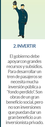 El segundo requisito para desarrollar un tren de pasajeros es que se necesita mucha inversión pública a “fondo perdido”. Son obras de un gran beneficio social, pero no son inversiones que puedan dar un gran beneficio a un inversionista privado, acotó.