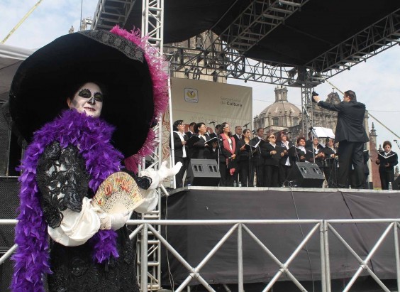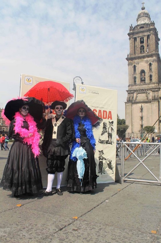 Por su parte, la compañía de teatro Fénix Novohispano y el grupo Tepectipac Tlallocalli con vestimentas y maquillajes recrearon las tradicionales "Calaveras" en diferentes personajes, que abarcaron desde un humilde campesino hasta un notable hombre de sociedad de mediados del Siglo XX.