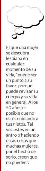 Ellas viven una doble discriminación: son mujeres… ¡Y lesbianas! Para Paulina Martínez, coordinadora del grupo lésbico Musas de Metal, el que una mujer se descubra lesbiana en cualquier momento de su vida, “puede ser un punto a su favor, porque puede revisar su cuerpo y su vida en general. A los 50 años es posible que no estés cuidando a tus nietos. Tal vez estés en un antro o haciendo otras cosas que muchas mujeres, por el hecho de serlo, creen que no pueden”.