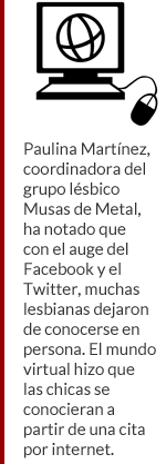Paulina Martínez notó que con el auge del Facebook y el Twitter, muchas lesbianas dejaron de acudir a Musas de Metal y conocerse en persona. El mundo virtual hizo que las chicas se conocieran a partir de una cita por internet. “Más que visibilizarse como lesbianas, se crean guetos. Pierdes el sentido de lo político. Además de que se pierde el compartir ideas y experiencias como grupo. Creo que es un cambio generacional a partir de Internet”.