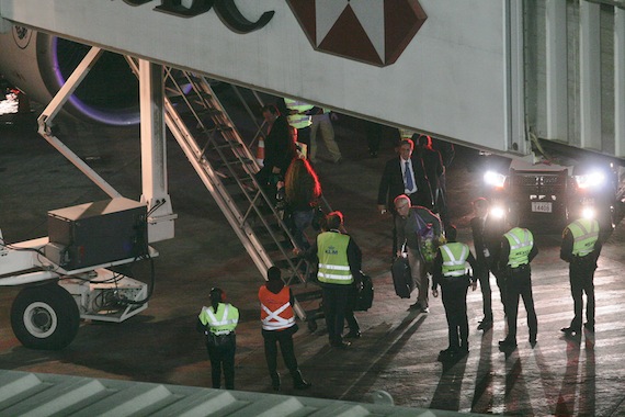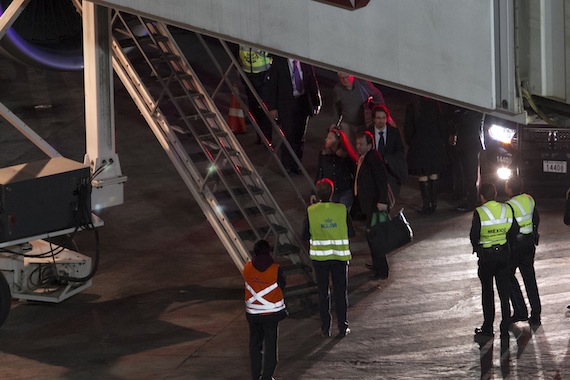 Minutos después  arribó al hangar de la Policía Federal que está a un costado de la Terminal 2 del Aeropuerto Internacional de la Ciudad de México.