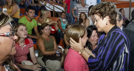 Rousseff, acompañada por sus ministros de Salud, Educación, Desarrollo, Industria y Comercio y Derechos Humanos, se reunió con algunos de los heridos en el hospital de la Caridade y con los familiares de las víctimas en el Centro Deportivo Municipal, el gimnasio al que fueron conducidos los cadáveres para su identificación.