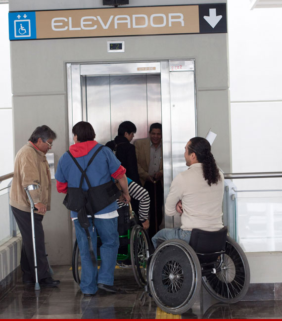Nos llamó la atención que en la estación Hospital 20 de Noviembre, un punto importante de esta ruta porque facilitará el acceso a este centro que cada día es visitado por cientos de personas, muchos con movilidad reducida, el elevador que permite entrar desde la calle a los torniquetes del metro aún no está terminado, de manera que los usuarios con discapacidad física que quieran entrar, aún deben ser apoyados por algún buen samaritano. Y quien sí pudo entrar en otra estación con su silla de ruedas, al llegar al Hospital no pueden salir.