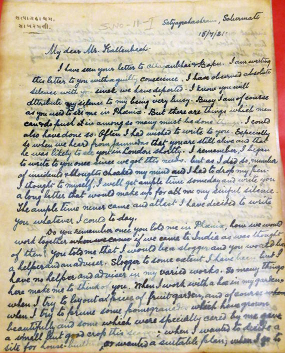 En los 23 años de paréntesis no perdieron el contacto, a través de correos postales en inglés que manifiestan su complicidad; se llamaban uno al otro Cámara Baja (Kallenbach) y Cámara Alta (Gandhi), y ambos se despedían en las cartas con la palabra "Amor".