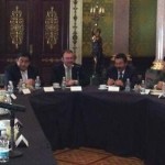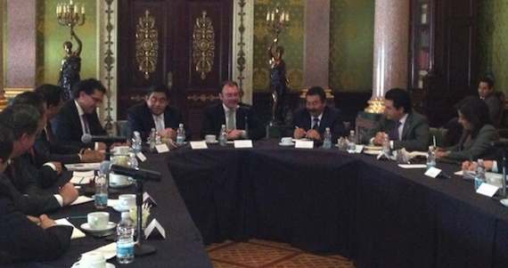 De acuerdo con la vocera de la Secretaría de Hacienda y Crédito Público (SHCP), Pola Strauss Seidler, al término del encuentro que se celebra en Palacio Nacional, Videgaray Caso y el coordinador de los senadores de este instituto político, Miguel Barbosa Huerta, darán una conferencia de prensa.