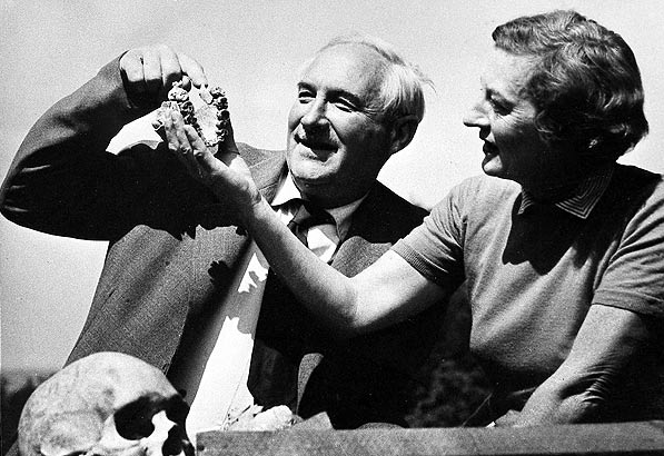 Mary y Louis Leakey inspeccionando el fósil 'Zinjanthropus boisei'