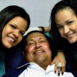El Presidente, vestido con su habitual ropa deportiva de la Academia Militar, aparece flanqueado por dos de sus hijas en las imágenes, tomadas el jueves por la noche, según Arreaza.