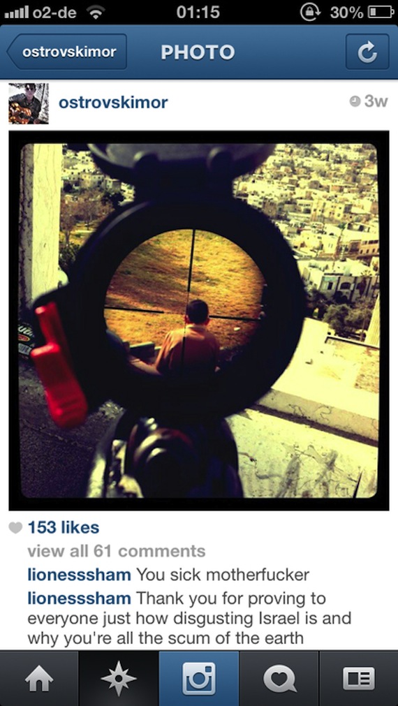 El escándalo desatado por el soldado Mor Ostrovski, quien publicó en Instagram una imagen en la que aparece la mira de un fusil de francotirador sobre un niño palestino, dio paso a que se conocieran una serie de imágenes que fueron consideradas menos perturbadoras por la opinión publica, pero no por ello quedaron exentas de polémica.