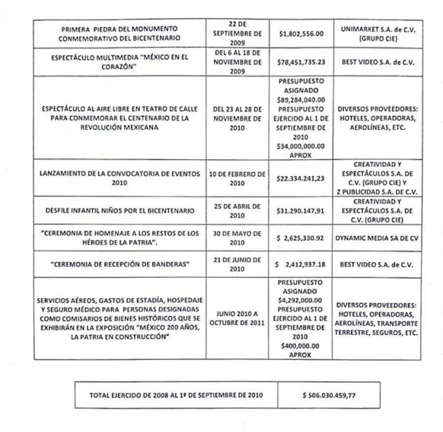“En esa declaración, abunda que Patricia Flores Elizondo tenía especial interés de que los actos conmemorativos se pagaran a Best Video: ‘se organizaba el evento y después de algunos meses había reuniones en las que ya se nos decía cómo facturar, cómo presentar los números. A nosotros no nos informaban cuánto costaba el evento, cuánto iban a costar los servicios, simplemente (nos decían): haces tal evento, se factura y lo pagas, a través de la SEP, Conaculta, y algunas otras dependencias’”, plantea el texto del periodista.