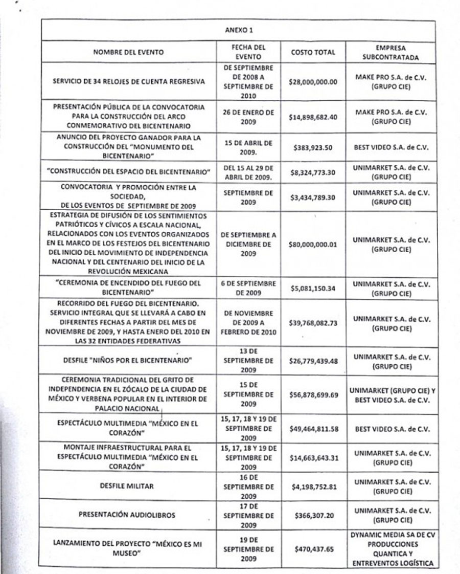 Los documentos exhibidos por Loret de Mola sugieren que asignó a dos empresas –directamente y sin licitación de por medio– eventos relativos a la celebración del Bicentenario de la Independencia de México.