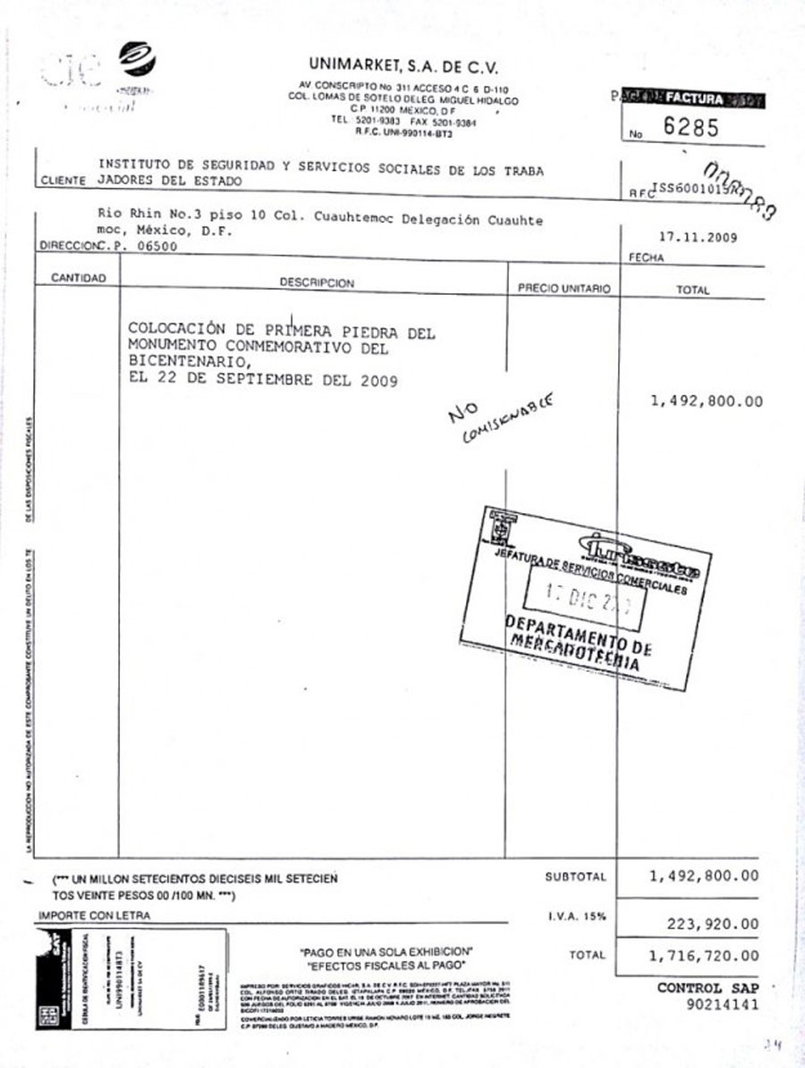 Ciudad de México, 26 de feb (SinEmbargo).– El periodista Carlos Loret de Mola exhibió este día en su sitio de Internet (www.carlosloret) una serie de facturas que podrían incriminar a la ex poderosísima Jefa de la Oficina de la Presidencia de la República y parte del equipo más íntimo del ex Presidente Felipe Calderón, con gastos irregulares por los festejos del Bicentenario.