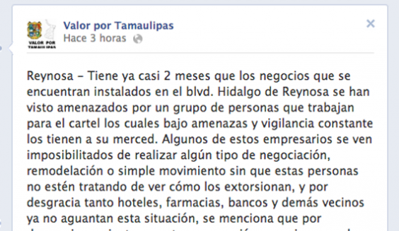 El 20 de febrero comenzó a circular un video titulado “Advertencia a usuarios de Facebook y Twitter”, en el que se exhibe lo que podría ser la ejecución de un presunto colaborador de “Valor por Tamaulipas”; sin embargo, el responsable del sitio publicó que desconoce si el material es real o apócrifo.