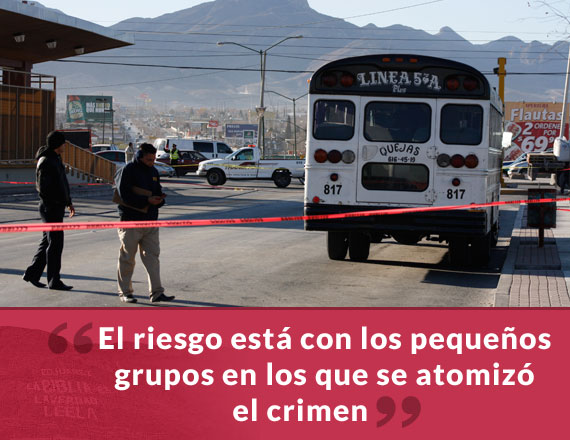 En todo caso, la espectacular caída de los índices de homicidios, secuestros y extorsiones coincide con el retiro de militares y agentes federales de la ciudad, más que con cualquier otro factor, afirma la doctora Leticia Chavarría, una de las voces discordantes dentro de la Mesa de Seguridad creada en el contexto de Todos somos Juárez. “Las autoridades han tratado de hacernos creer que existía una línea debidamente trazada que dividía a buenos y malos; los militares y policías eran los buenos, según ellos, y del otro lado todos eran los malos. Pero eso es totalmente falso: el nivel de infiltración que existía era enorme, y no sólo eso: tanto militares como federales eran parte central del problema”, sostiene.