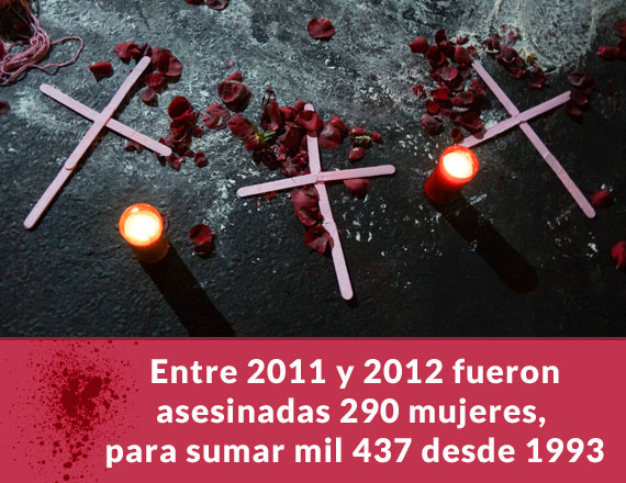 Entre 2011 y 2012, por ejemplo, fueron asesinadas 290 mujeres, para sumar mil 437 desde 1993, de acuerdo con datos de la fiscalía estatal. Se trata sólo de la expresión más drástica de la violencia.
