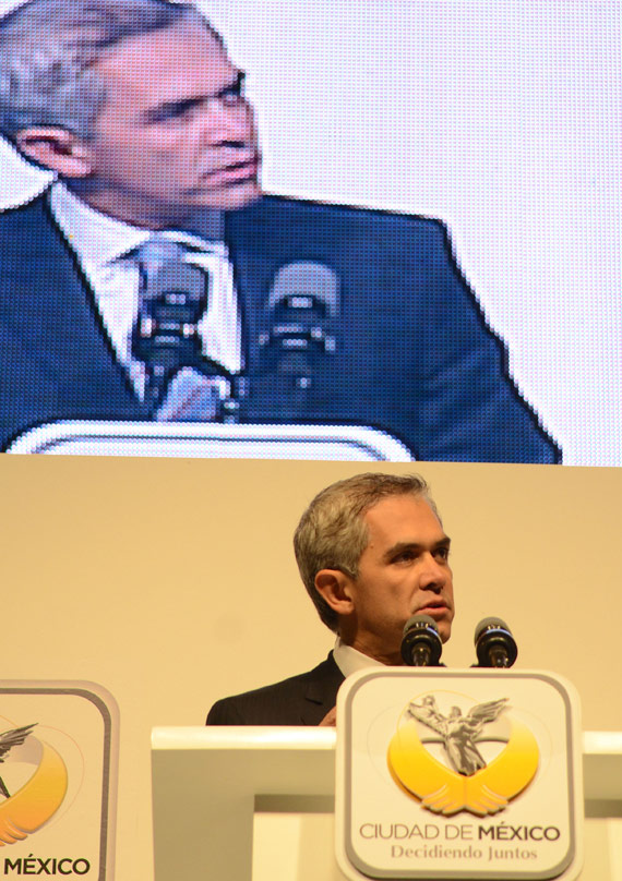 Miguel Mancera inició con su discurso. Los logros de su gobierno desfilaron uno tras otro. El trabajo en las colonias, la creación de la Agencia de Gestión Urbana, la ciudad del conocimiento, el programa Disfruta la Ciudad de México –que incrementó la ocupación hotelera del DF 4% en sus primeros 100 días de gobierno– y, por supuesto, la promesa de hacer de la capital del país la más segura.