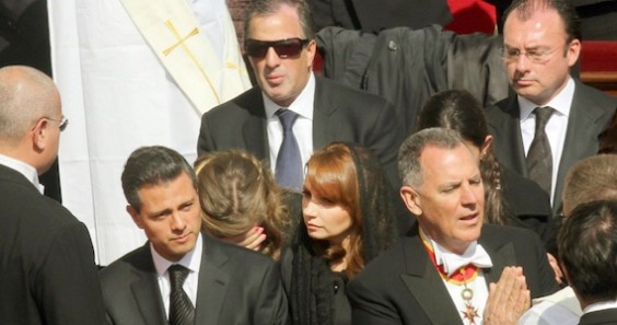 El mandatario mexicano arribó acompañado por su esposa Angélica Rivera a las 8:50 horas a la explanada del patio central de la Plaza de San Pedro, en donde fueron acomodados en el lugar de honor para los jefes de Estado y Gobierno.