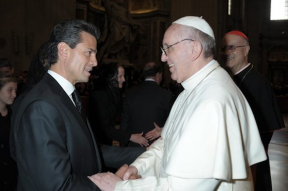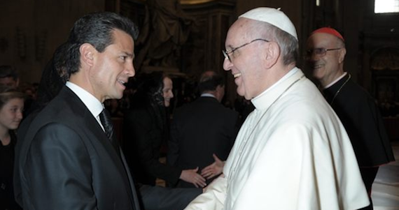 El mandatario pudo saludar al obispo de Roma junto al altar mayor de la Basílica de San Pedro acompañado por su esposa Angélica Rivera y dos de sus hijas, después de la misa de inicio de pontificado en la cual participaron unas 200 mil personas.