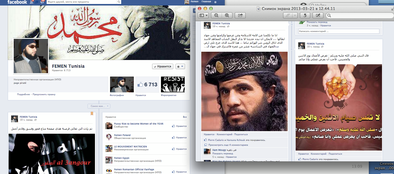 Madrid, 21 Mar (Notimex).- Piratas cibernéticos hackearon hoy la pérfil de Facebook de el movimiento feminista Femen en Túnez y cambiaron sus características fotografías en topless, por el pecho desnudo de un hombre con el nombre en árabe del profeta Mahoma.