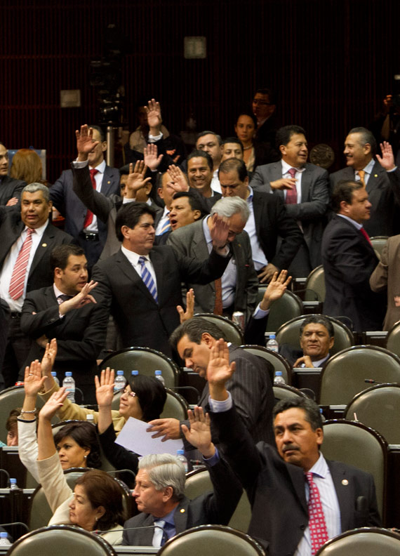Ciudad de México, 26 de marzo (SinEmbargo).- La aprobación de la Reforma en Telecomunicaciones en la Cámara de Diputados dejó al descubierto una práctica legislativa común, pero no por ello poco dañina. Develó el fenómeno de los diputados levantamanos, que según lo observado en esta trascendental votación, estaría conformado por el 98 por ciento de los integrantes del pleno de San Lázaro.