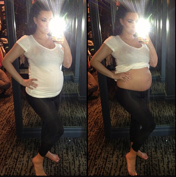 Los Ángeles, 6 Abr. (Notimex).- La actriz estadunidense Kim Kardashian compartió un par de imágenes donde luce su avanzado embarazo, y escribió "Baby love", en honor al bebé que espera, fruto del amor con el rapero Kanye West.