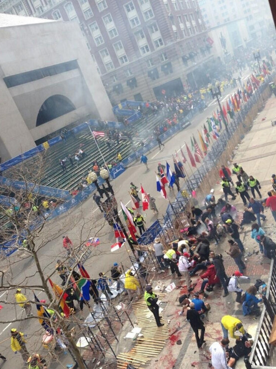 El maratón estaba aún en proceso pese a que los corredores de élite ya habían concluido su recorrido. La línea de meta está situada en la céntrica Boylston Street.