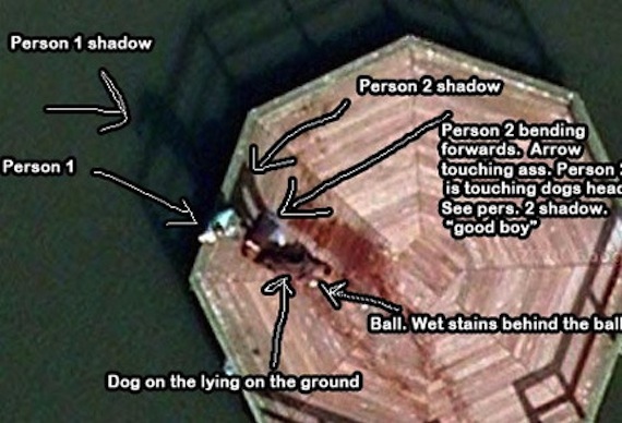 Las preguntas eran muchas y las hipótesis se fueron acumulando hasta que después de varios análisis de la imagen algunos usuarios empezaron a tomar en cuenta la situación geográfica, la hora del día, el contexto de la situación, el material del muelle y otros aspectos para concluir que en realidad se trataba de dos personas que estaban jugando con un perro.