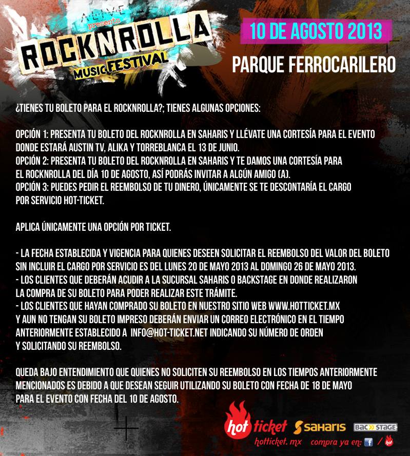*Originalmente el festival se haría el 18 de mayo, aquí algunas opciones para reembolsar el boleto. Los artistas siguen confirmados y se adicionan Los Master Plus.