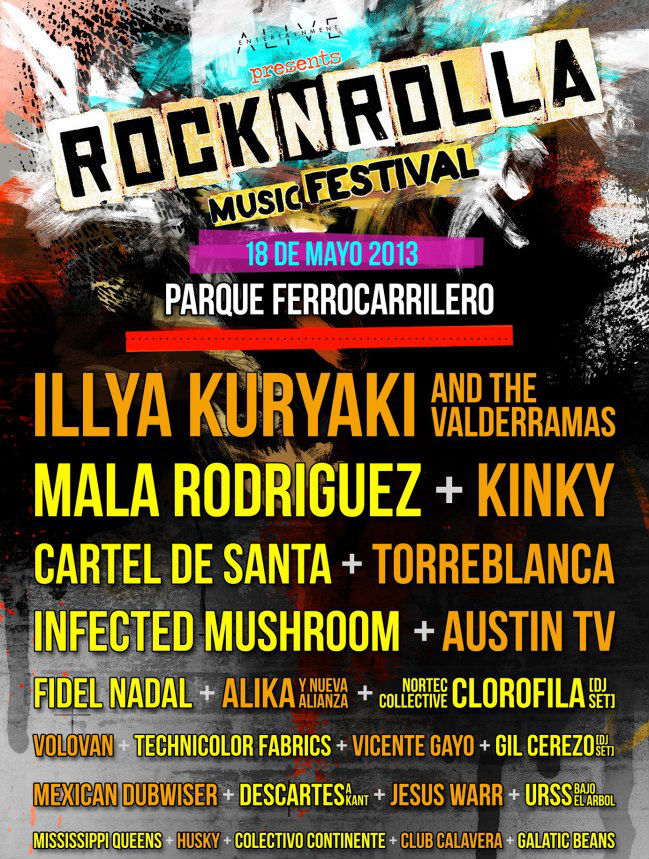El nuevo Rocknrolla Music Festival se llevará a cabo el próximo 10 de Agosto en Monterrey, una ciudad a la que cada vez más promotores le voltean la vista, y estará encabezado por el dúo argentino Illya Kuryaki and the Valderramas, La Mala Rodríguez y Kinky.