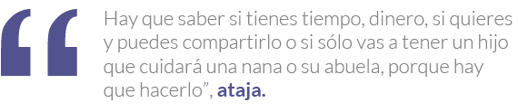 Las entrevistadas remarcan que, independientemente de si se cuenta o no con una pareja, las mujeres deben tomar en cuenta que la vida se transforma radical y permanentemente en todos los aspectos, desde cambios físicos y biológicos que incluyen una preparación física para el proceso –saber si está en buen estado, dejar de fumar, de beber, tomar ácido fólico, alimentarse adecuadamente–, hasta modificaciones en hábitos, horarios, pasatiempo y espacios.