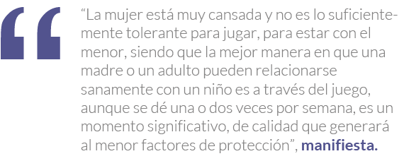 Rocha asevera que la violencia ejercida contra los hijos es un reflejo de lo vivido con los padres y la pareja , además, subraya que no es algo natural ni justificable. Sin embargo, el hecho de que las mujeres se dediquen en mayor proporción a las tareas del hogar y toda la responsabilidad de la crianza recaiga en ellas hace entendible este fenómeno, “no hay persona que no tenga posibilidades de estallar o de cometer actos de maltrato con tantas presiones”. En tanto, Blanca Gil alega que éste tiene que ver con la transición de la madre a la etapa adulta y con darse cuenta de que la maternidad no es lo que ella creía, así como notar que constituye un reto compartir tiempo, dinero; todos estos componentes sumados a la doble jornada que muchas mujeres realizan –labores dentro y fuera del hogar– propician agresiones: