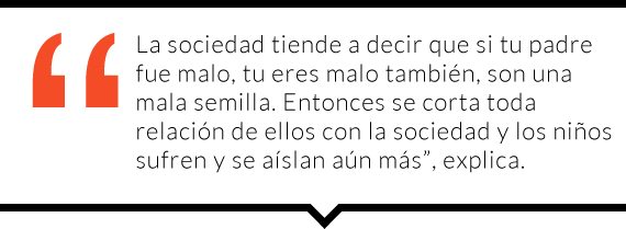 Además, dice, México es un país de estigmas donde el simple hecho de no tener uno o ambos padres crea un rechazo entre los mismos niños y los padres de sus compañeros de clases. “Entonces cuando uno de sus padres o ambos son criminales, se sobreestigmatiza la situación del niño”.