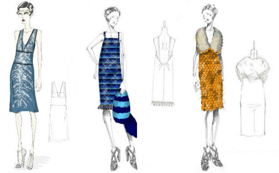 Seda y gasa, bordados con cristales y paillettes, pieles y terciopelos; volantes, flecos, piedras de colores, tocados, en una paleta de verde agua, azul cielo, dorados y rosas suaves, ilustran con toques modernos un vestuario que pese a todo intenta no traicionar a la época en que transcurre la historia.