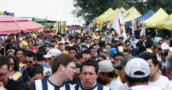 El vendedor de banderas es uno de los cientos de oficios que se desarrollan en la explanada del estadio Azteca cuando hay algún evento masivo. Es la vuelta de la semifinal del clausura 2013 y el aire huele a fritangas con pólvora de cohetes. El suelo arde con el sol de media tarde a plomo. Hay miles de personas de un lado hacia el otro con distintos objetivos. Al fondo, el coloso inmueble yace impaciente mientras se llena de a poco.
