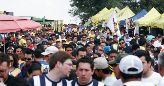 La parte central de la explanada es inhabitable, es una estructura simbólica del estadio que se construyó ahí con sus 15 metros de alto. Al costado de la pieza se forman dos filas de negocios con carpas amarillas. La mayoría sirve para matar el hambre que siempre tiene el mexicano.