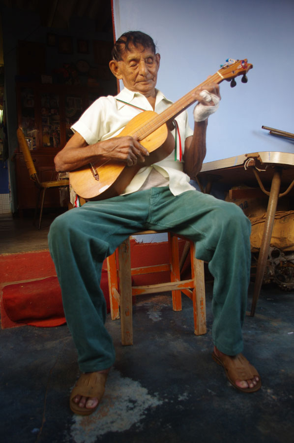 El “Tío Cubi” es campesino por herencia y jaranero de pura sangre. Tiene 76 años, aunque conserva el recuerdo cristalino de su padre tocando la jarana sobre el patio de su infancia. El son jarocho estaba reservado para manos veteranas; los jóvenes se limitaban entonces a observar y a tocar en la noche, “para no olvidar las pisadas”.
