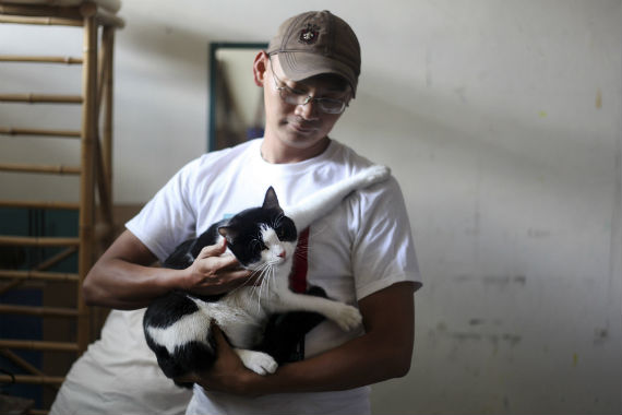 Chamorro recuerda que fue hace casi un año cuando él junto con su compañero, Daniel Cruz, tenían deseos de adoptar un gato. En Facebook vieron un post de una gatita que acababa dar a luz a una camada, pero había también otros felinos en adopción, entre ellos una felina de tres colores que fue la que en un primer momento llamó su atención.