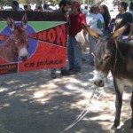 El asno, de cuatro años de edad, es utilizado para dar terapias a niños con Síndrome de Down, indicó su propietario, Onésimo Candelario Vázquez, quien accedió a prestar al animal para los actos proselitistas.