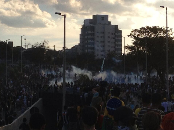 Mientras, violentos enfrentamientos entre manifestantes y efectivos policiales se registraron en las inmediaciones del estadio “Mineirao”, en Belo Horizonte.