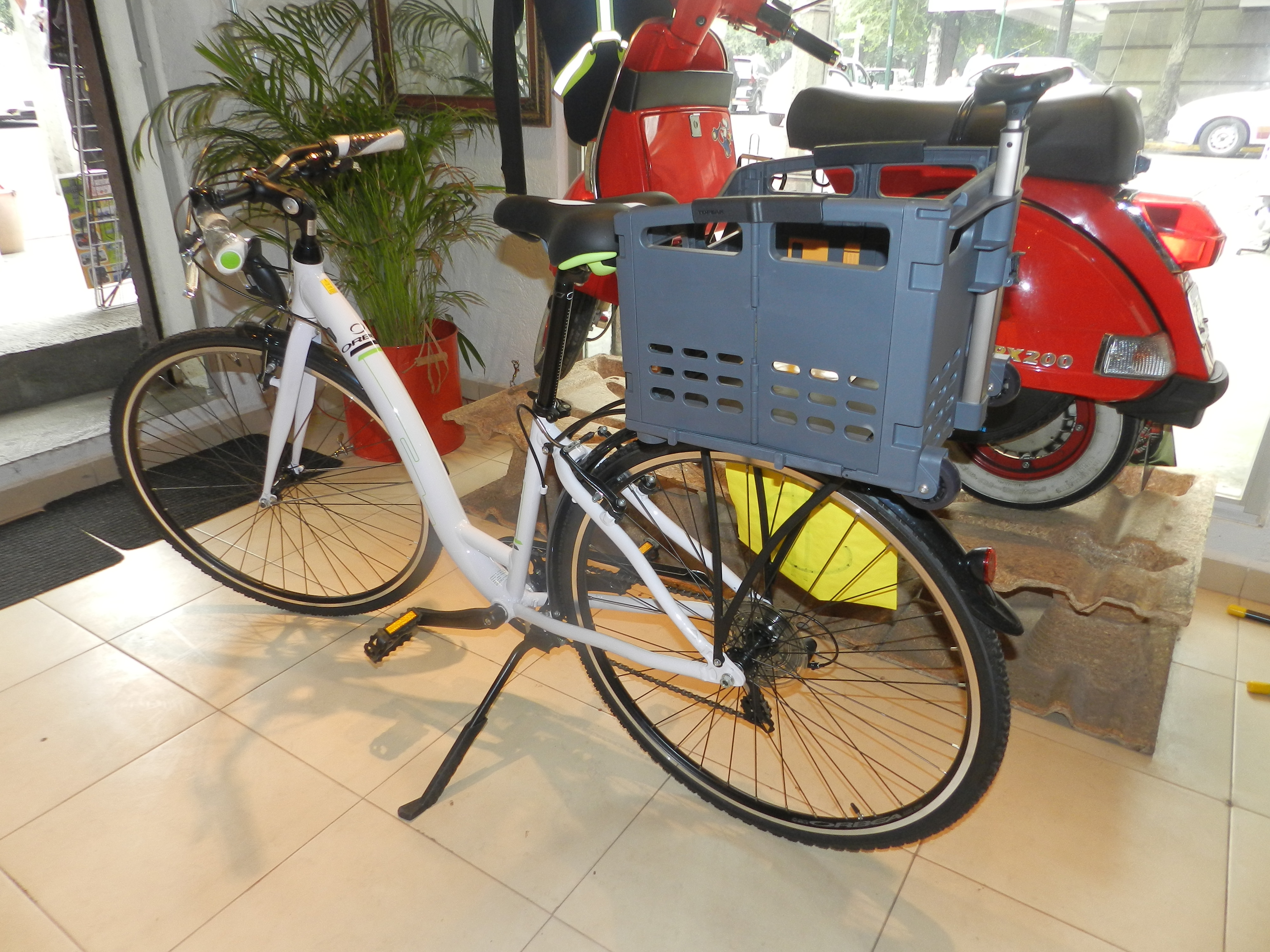 - Portabultos o racks: Hay de muchos tipos, los más sencillos te permiten asegurar objetos planos con resorte o bien puedes utilizar cuerdas para asegurarlos. Existen otro más sofisticados que en conjunto con una especie de contenedor con ruedas desmontable, sirve como carrito de súper.