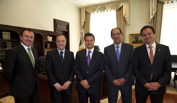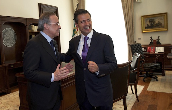 Ciudad de México, 9 de julio (SinEmbargo).– El Presidente Enrique Peña Nieto se reunió esta mañana con el presidente del consorcio español de construcción, energía y servicios ACS, Florentino Pérez, quien también es el presidente del club de fútbol, Real Madrid.