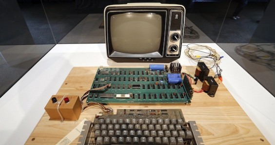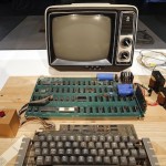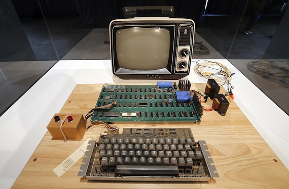 Ensamblado manualmente por Steve Wozniak y con un aspecto que nada tiene que ver a lo que hoy se entiende por un computador, este Apple-I se componía de una tabla de madera con un teclado, sin pantalla, con la placa base vista, un microprocesador y dos interruptores.