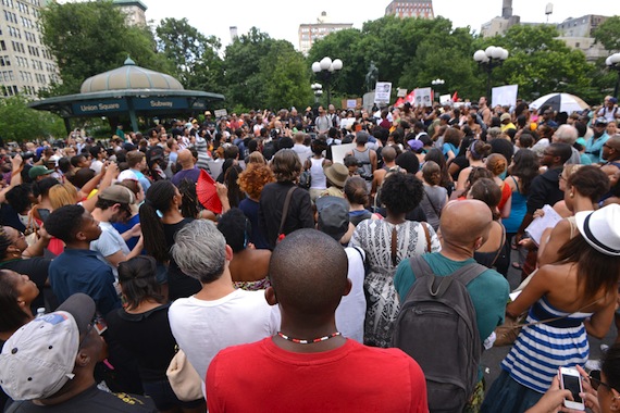PFX7. New York (United States), 14/07/2013.- Demonstrators protest the not guilty verdict in the trial of George Zimmerman at a rally for Trayvon Martin at Union Square in New York, New York, USA, 14 July 2013. After a three week trial, the six-woman jury found George Zimmerman, not gulity in the death of 17-year-old Trayvon Martin. EFE/EPA/PETER FOLEY