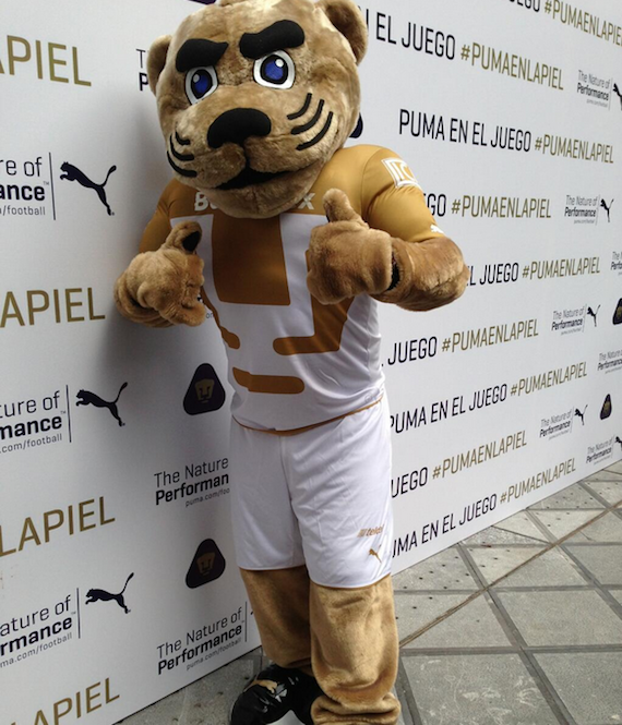 El encargado de portar la playera blanca con el Puma dorado, que será el primer uniforme del equipo, fue la mascota oficial Don Goyo.