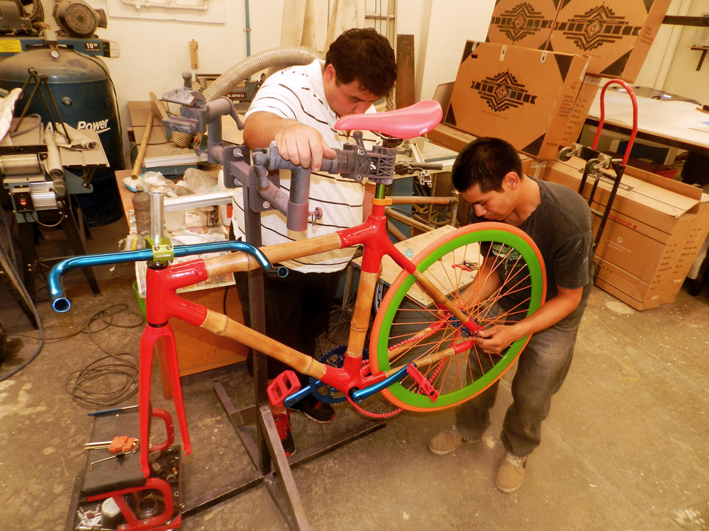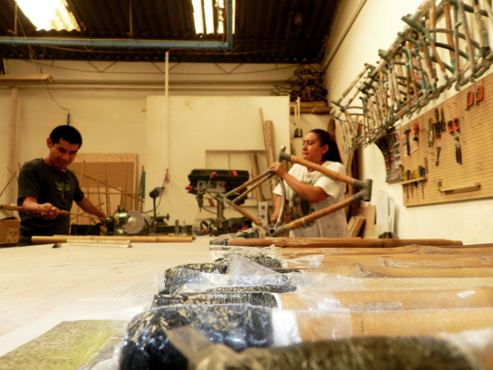 Con sólo cuatro personas trabajando en el taller, Bamboocycles produce 25 bicicletas ensambladas a mano al mes, con bambú 100% mexicano, "en el curso había casas de bambú, entonces eso fue lo que necesitaba saber. También hablamos de especies, y me di cuenta que tenía que encontrar las especies adecuadas en México. Lo primero que hice fue ir a Home Depot y con el bambú que ahí adquirí hice la primera bici. Luego me fui a Veracruz, investigué de plantaciones, conservación, hice pruebas en el laboratorio de materiales de la UNAM para ver la resistencia...", continúa.
