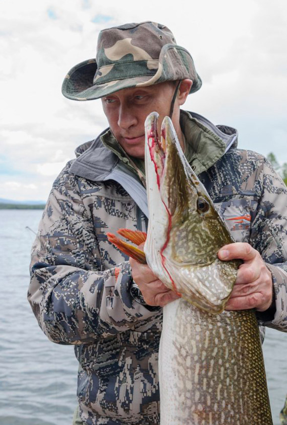 El Kremlin informó de que el presidente había capturado por su cuenta y riesgo un lucio de 21 kilos de peso, pieza que llamó la atención de los guardabosques locales, que no habían visto nunca nada igual por esos lares.