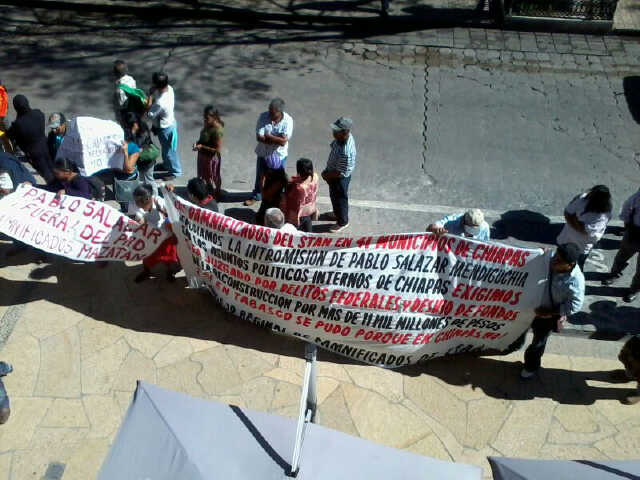 Por otra parte, Carlos Tapia Ramírez, dirigente de la Asociación Civil del Soconusco, se plantó con un grupo de afectados por el huracán "Stan" de Tapachula, frente al restaurante en el que habían sido citados los periodistas locales para una conferencia con Salazar Mendiguchía.