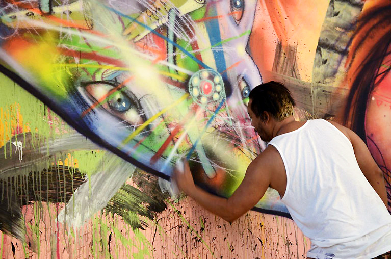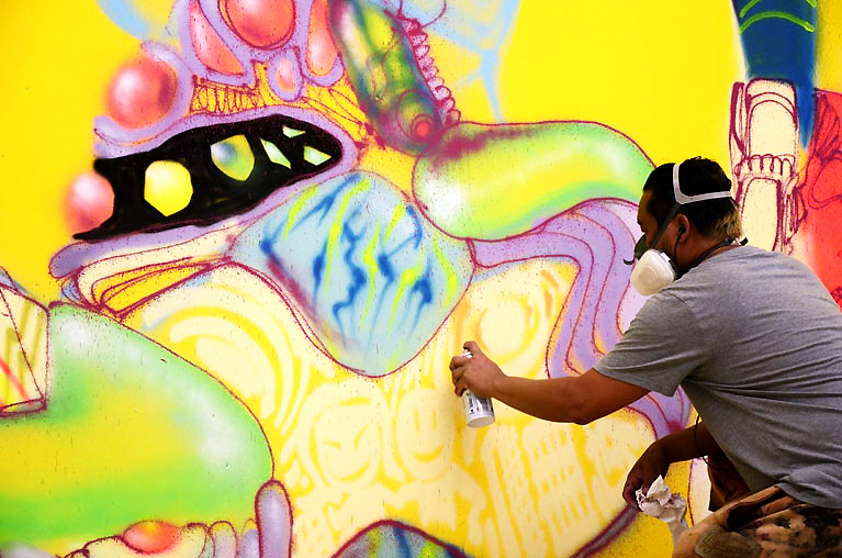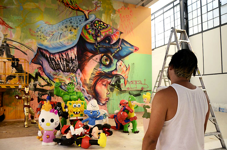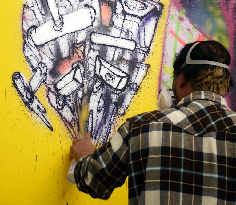 “Todo esto está plasmado en mi trabajo: murales, esculturas, acuarelas, aceite; una mezcla de distintos medios de comunicación. Si tienen suerte y ya estoy muy ebrio de mezcal, tal vez haga algo de performance, también. ¡Es un honor, para mí, mostrar mi trabajo en uno de mis lugares favoritos en el mundo, la Ciudad de México! (Me estoy comiendo un taco de vísceras y escribo esto con una sola mano, en este momento) Si estás en la ciudad el sábado, 17 de agosto de 2013, ven y échale un ojo a la exposición en el Museo Universitario del Chopo. Voy a hacer que valga la pena la visita”, promete.
