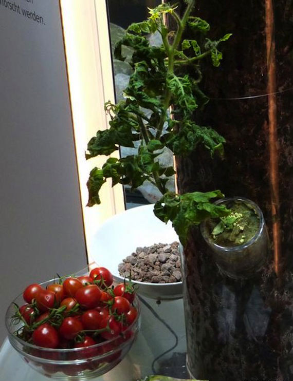 Sin embargo, para que la comida de los astronautas no consista solo en algas, especialistas como la bióloga Gerhild Bornemann proponen cultivar tomates y otras verduras en tubos de vidrio en los que aplicarían corrientes de agua con el mismo principio que se utiliza en un invernadero, para el que se usaría como material de relleno sedimentación de lava.
