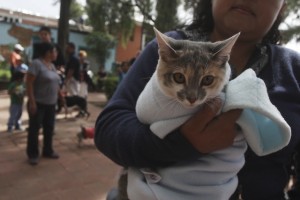 OAXACA, OAXACA, 31AGOSTO2013.- Una de las tradiciones más antiguas que existen en la ciudad de Oaxaca es la celebración de San Ramón Nonato, día en el que feligreses acuden al templo de La Merced a don de llevan a sus mascotas para ser bendecidas por el párroco, Víctor Hernández Antonio. Decenas de creyentes acuden cada 31 de agosto con perros, gatos, pericos, ratones, a los cuales visten de distintas formas.. FOTO: ARTURO PÉREZ ALFONSO /CUARTOSCURO.COM