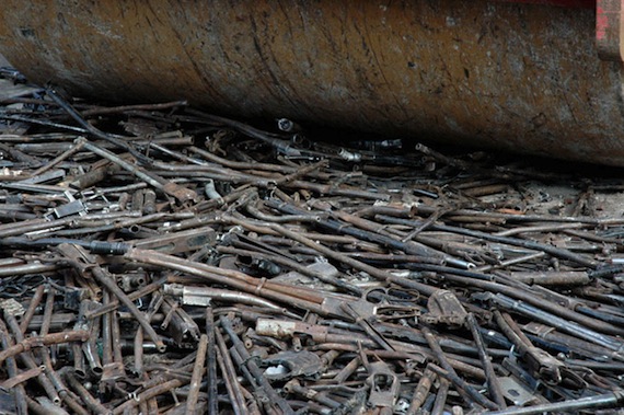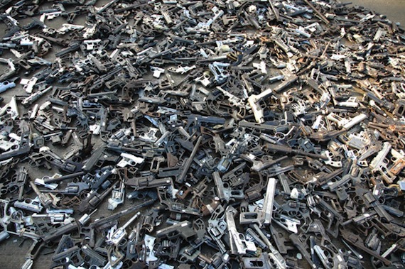 Finalmente, los jóvenes que se encontraban realizando el servicio militar ayudaron a remover cualquier parte no metálica de las armas antes de ser enviadas a una fundidora.